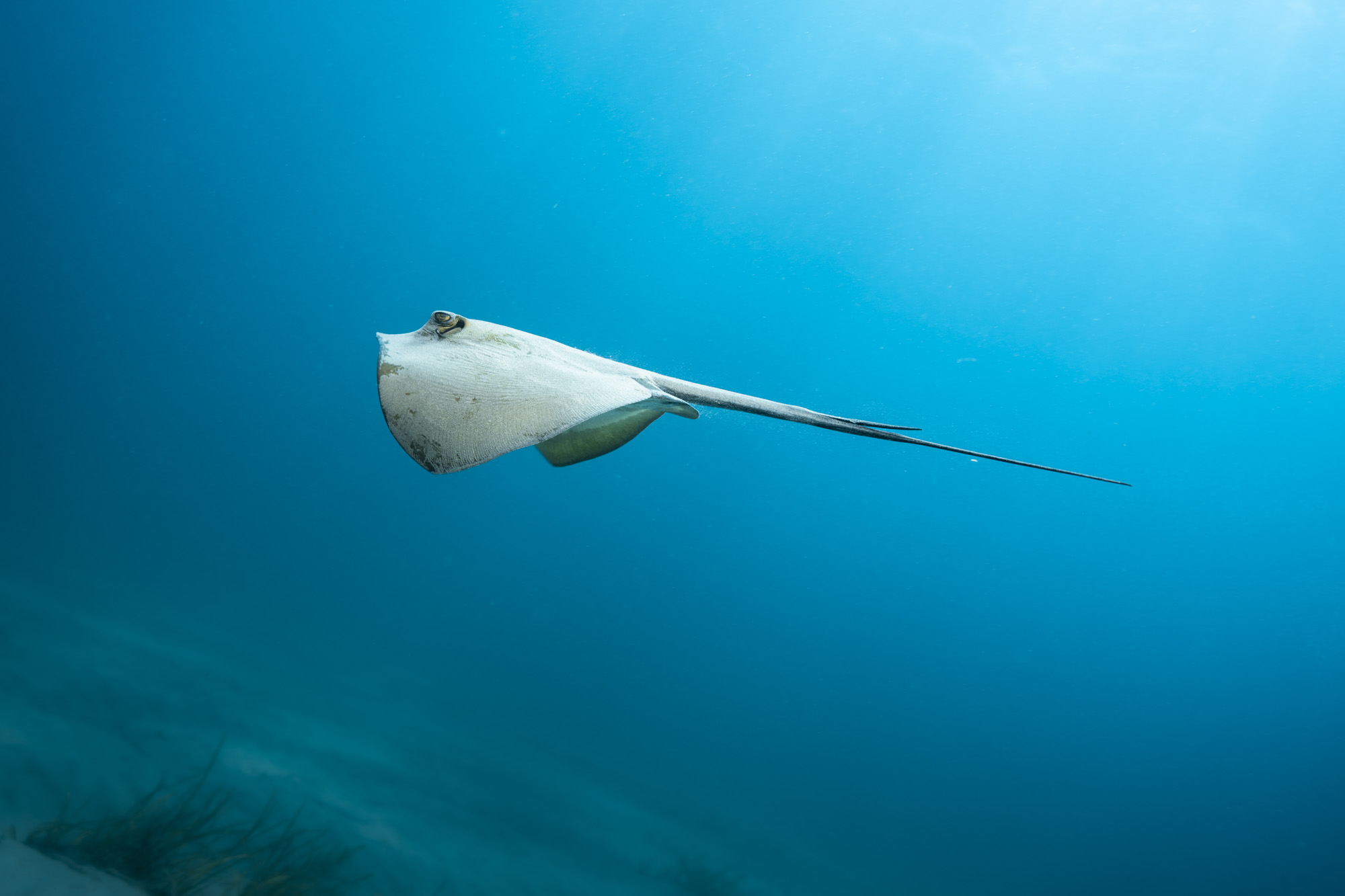 La especie Dasyatis pastinaca, conocida en Canarias como chucho amarillo, es una raya bentónica de cuerpo aplanado y disco pectoral ancho que puede alcanzar más de un metro de longitud. Su dorso presenta el tono amarillento o marrón claro por el que recibe su nombre común, mientras que el vientre es más pálido, lo que facilita el camuflaje sobre los fondos arenosos donde suele permanecer. La cola larga, delgada y equipada con un aguijón venenoso, es una herramienta defensiva que le permite disuadir posibles depredadores.
